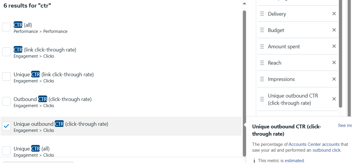 Именно по этой причине я рекомендую использовать Unique outbound CTR (link click-through rate) как показатель того, какая доля показов сконвертировалась в переход в стор или на вебсайт вашего продукта.